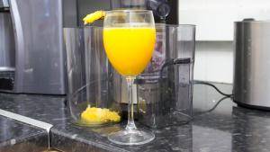 A készülék okos és felhasználó-barát tervezését további részlet is jól mutatja. Az egyik apró ám mégis fontos figyelmesség a gyümölcslé kifolyó nyílást lezáró kupak, melynek segítségével elkerülhetjük, hogy az italunk a pultra csöpögjön, miközben mi éppen a szervírozást végezzük. Ha tehát végeztünk, akkor egyszerűen csak becsukjuk és nem csöpög.
